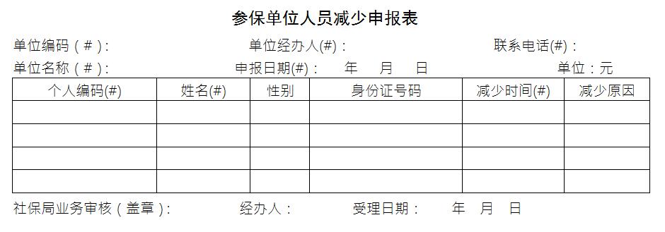 1、本表由参保单位每月15日前办理社会保险费申报时填写当月缴费人员减少的情况。