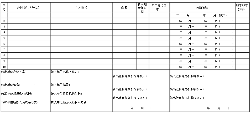 (本表一式四份:转出社保机构、转入社保机构、转出单位及转入单位各一份)