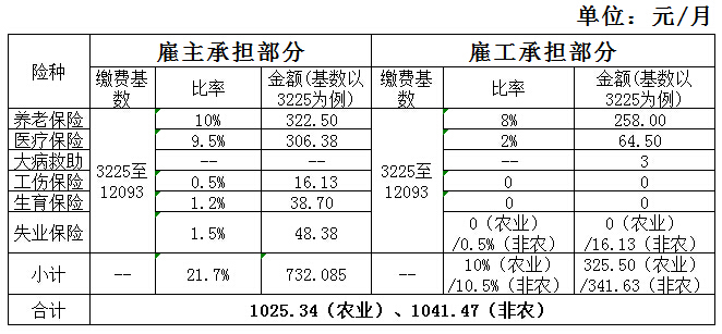 说明:1.失业保险农业户籍人员不缴个人部分;