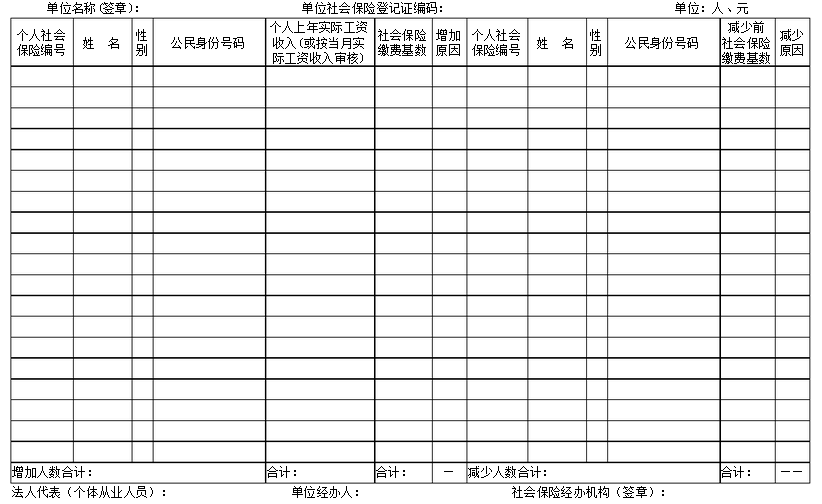1、此表由单位经办人员、个体从业人员填写(或报盘,一式三份,社会保险经办机构、地税机关及单位或个体从业人员各一份。